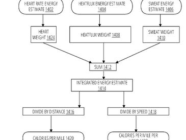 The system comprises a flexible substrate for skin contact, with integrated sensors for measuring perspiration, heatflux, heart rate, and gastric emptying rate as well as a GPS positioning system for tracking distance, velocity, and elevation. The system's programmable logic calculates energy expenditure and movement efficiency metrics, such as calories per mile and calories per mile-per-hour, based on the combined physiological and GPS data.