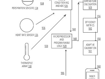The system comprises a flexible substrate for skin contact, with integrated sensors for measuring perspiration, heatflux, heart rate, and gastric emptying rate as well as a GPS positioning system for tracking distance, velocity, and elevation. The system's programmable logic calculates energy expenditure and movement efficiency metrics,